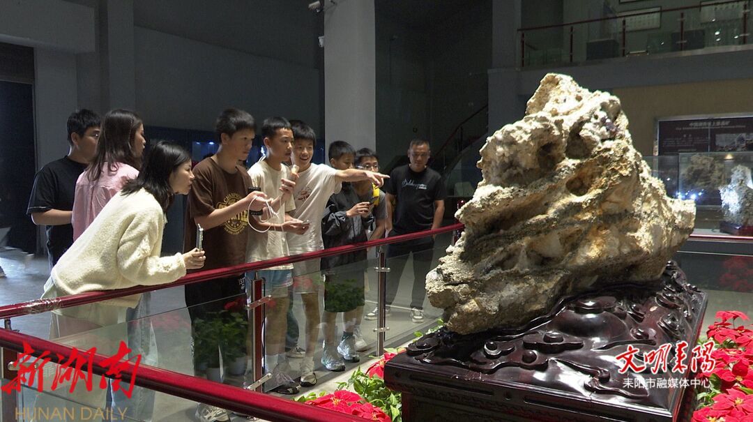 蔡伦竹海不仅有浩瀚的竹海、深厚的人文底蕴,还有丰富的矿产资源。在耒阳蔡伦竹海矿石馆,这里所展出的是蔡伦竹海上堡晶矿的矿石,该矿所产共生晶簇享誉世界,中国地质博物馆有20多件矿物标本出自此矿。上堡晶矿矿山公园坐落于国家4A级景区——蔡伦竹海风景区内,被誉为“竹海三绝”之一,同时也是世界著名的萤石和共生矿物晶体的发源地。耒阳上堡晶矿的矿石最大特点是共生晶簇,即一块矿石上共有多种矿物元素。集莹石、石英、白云石、绿水晶、方解石、硫铁矿于一簇。在竹海矿石馆,众多游客来此观赏矿洞内产出的大量珍贵、稀有的矿物晶体,感受大自然的鬼斧神工和精妙绝伦。游客谭女士说:“蛮新奇的,没想到在这可以看到如此美丽的晶矿。本以为在竹海就是看看竹子,呼吸一下新鲜空气,这次旅游很惊喜,竹海的旅游资源越来越丰富了。”