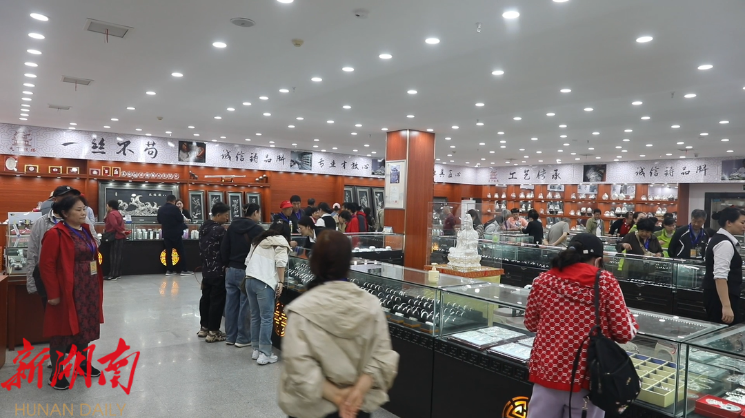湖南日报·新湖南客户端5月3日讯(记者 郭伊凡)五一期间,中国白银文化坊迎来了旅游热潮,国内外游客纷至沓来争相参观打卡,火爆的旅游也带动了银饰品的热销。