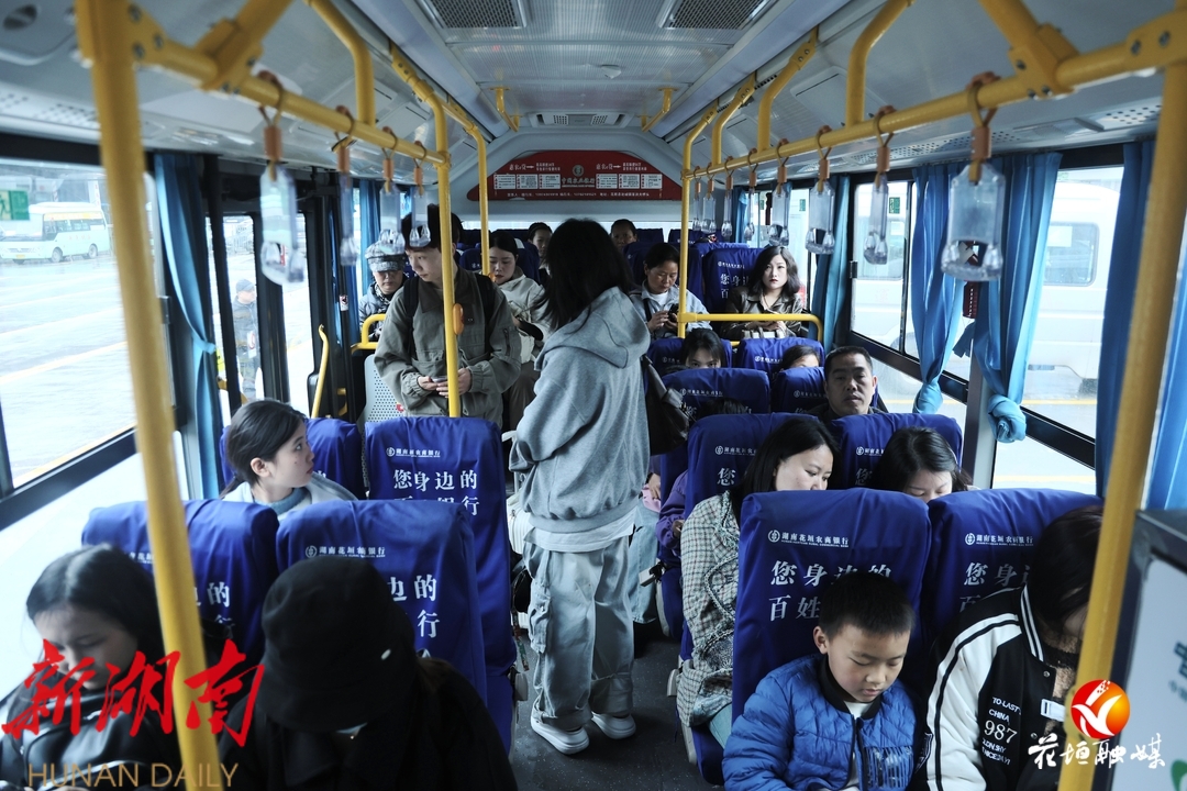 游客乘坐前往十八洞村的公交车