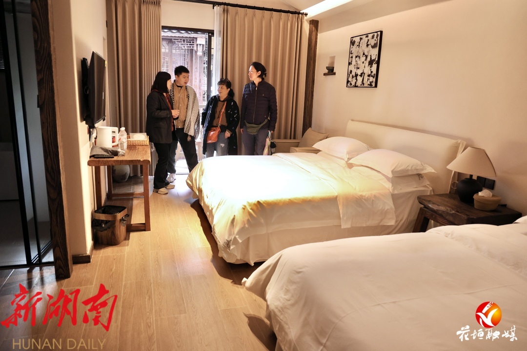 为了让游客玩得开心,吃得舒心,住的放心。多家民宿不仅提供住宿服务,还推出了游船、旅拍等套餐预订,为游客提供了多样化的选择。“游客们既然来到边城,我们就希望他们玩得开心,那服务就是第一位,所以我们会给他们推荐一些当地的小吃和游玩路线,如果有空闲时间,我们也会带着他们在景区游逛。”田井兵表示。