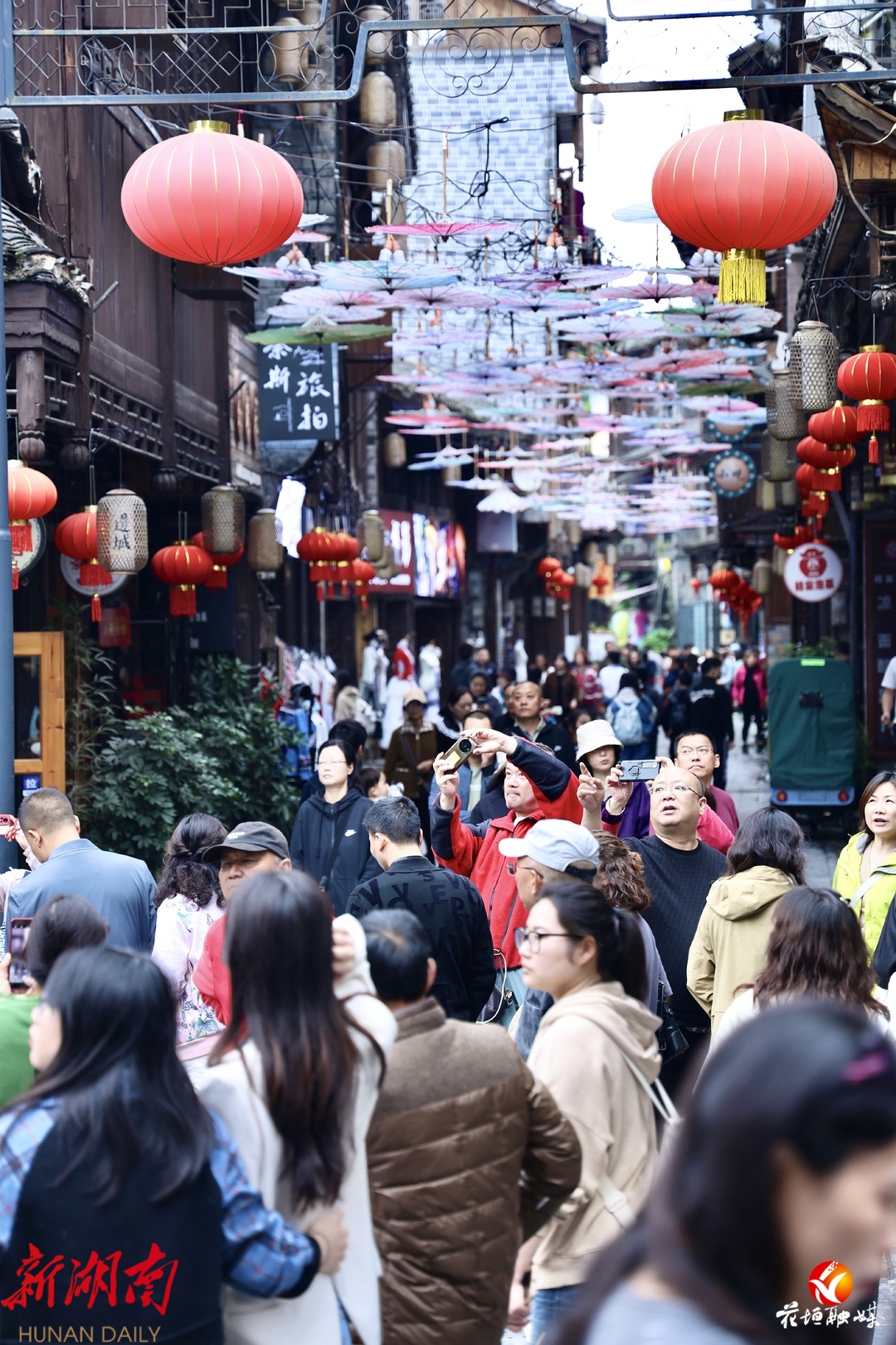 走进边城茶峒景区,东方红街人头攒动(本组图片均由林彬拍摄)