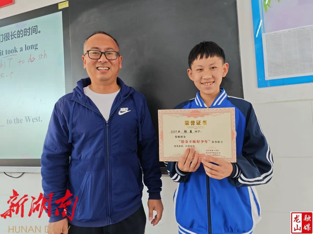 龙山县融媒体中心5月6日讯(记者 罗佳清)近日,龙山县第二中学学生彭森拾金不昧的事迹在校园流传开来。为表彰先进、树立典型,学校对他的行为提出表扬,号召全校同学向他学习。