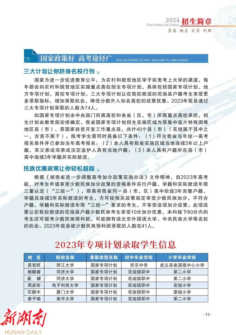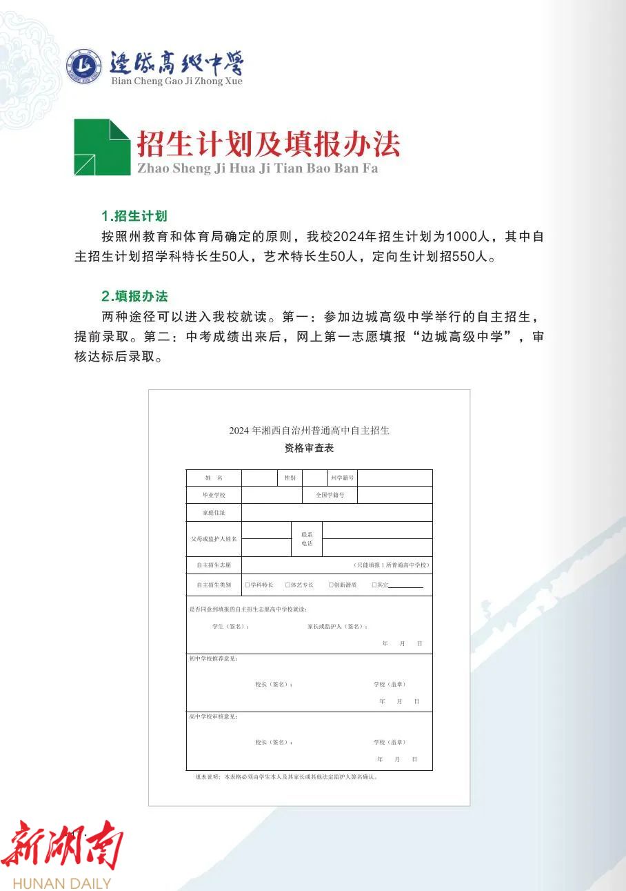 花垣县第一高级中学(边城高级中学)2024年招生简章