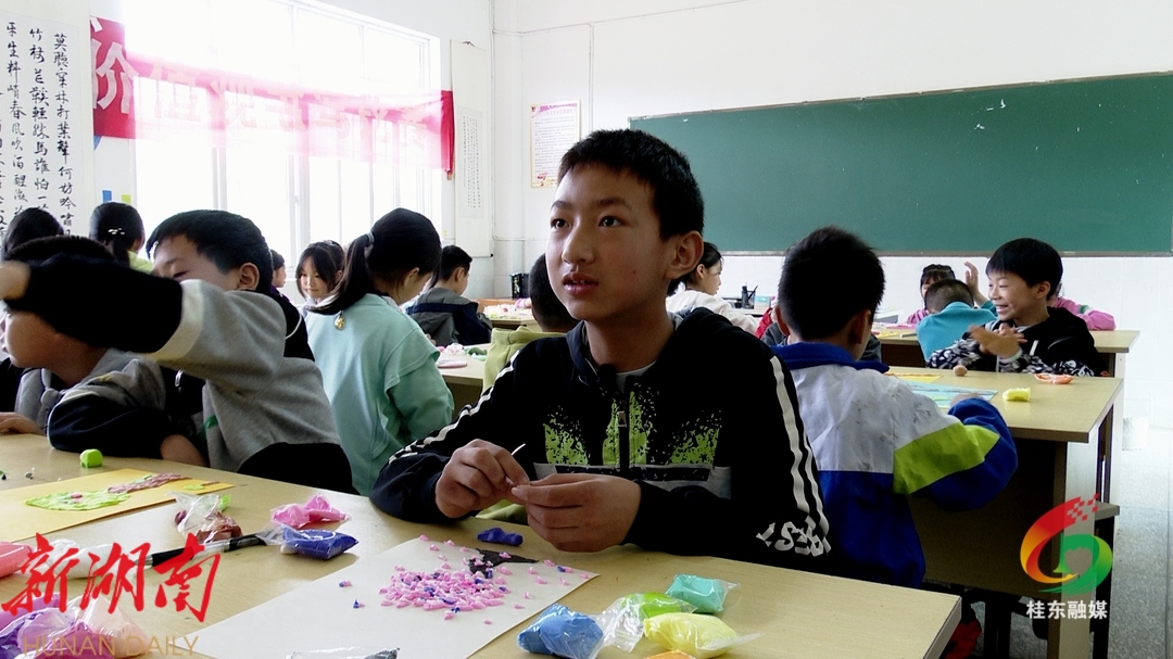 寒口学校学生陈凯轩:今天在美术创意班上,老师用黏土教会了我作画,我玩得很开心。