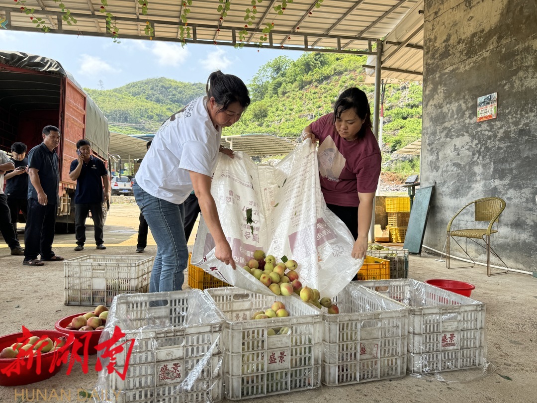 新江永客户端讯(记者 周翔 谢文彬 陈平成 通讯员 李娣 ) 眼下, 兰溪瑶族乡的早熟黄桃陆续成熟,抢鲜上市,为消费者带来了夏日的甜蜜。