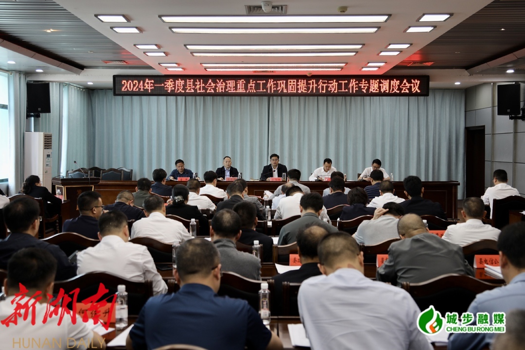新城步客户端5月9日讯 (记者 王蕾婷 肖力夫)5月8日下午,城步召开2024年一季度县社会治理重点工作巩固提升行动工作调度会,深入贯彻落实市委社会治理重点工作巩固提升行动工作调度会精神和有关决策部署,总结前期全县社会治理工作,安排部署2024年全县社会治理重点工作巩固提升行动相关工作。县委书记余勋伟出席会议并讲话。
