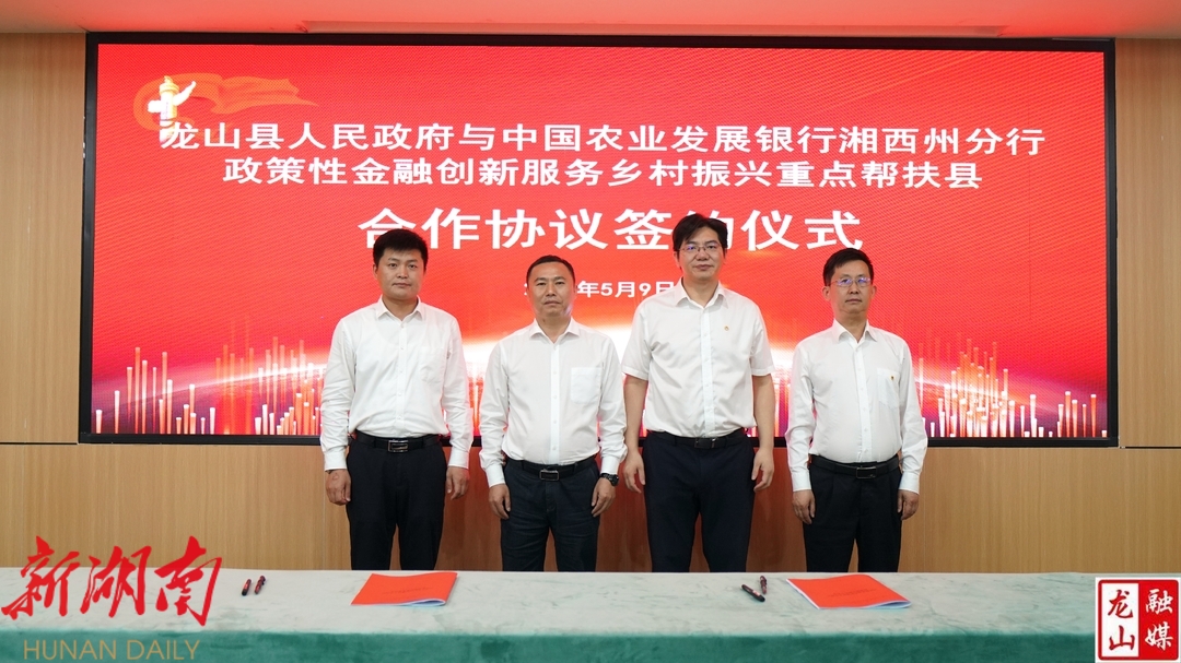 龙山县融媒体中心5月9日讯(记者 张前)5月9日,龙山县政府与农发行湘西州分行举行《政策性金融创新服务乡村振兴重点帮扶县合作协议》签约仪式。