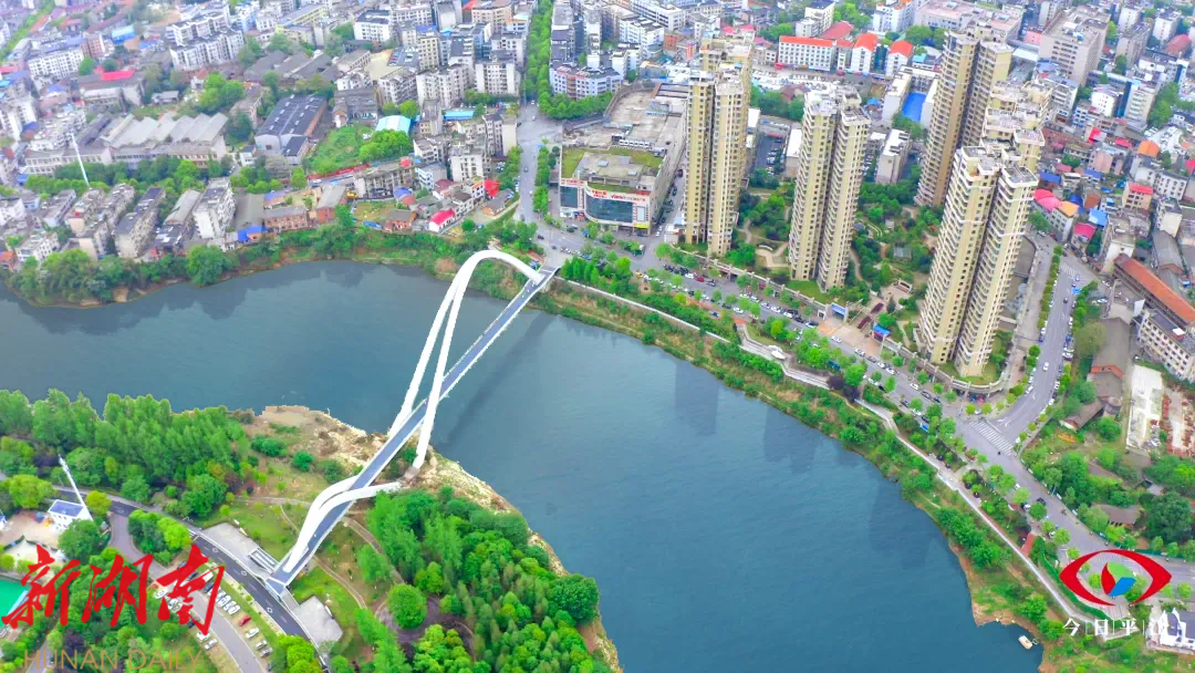 一座大桥,横跨汨水,桥南桥北连接老城新区,正处繁华地段。桥下的汨罗江远远而来,一波三折,又缓缓而去。