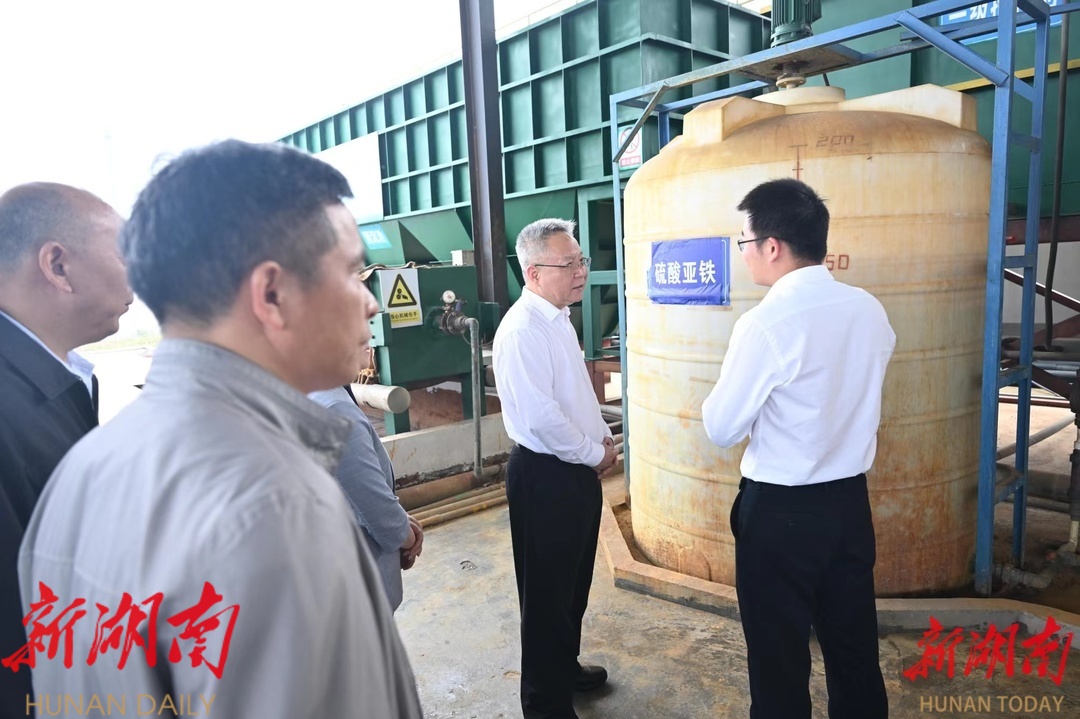 5月10日,沈晓明在长沙铬盐厂察看一体化污水处理设施,听取历史遗留废渣环境污染问题整改情况介绍。