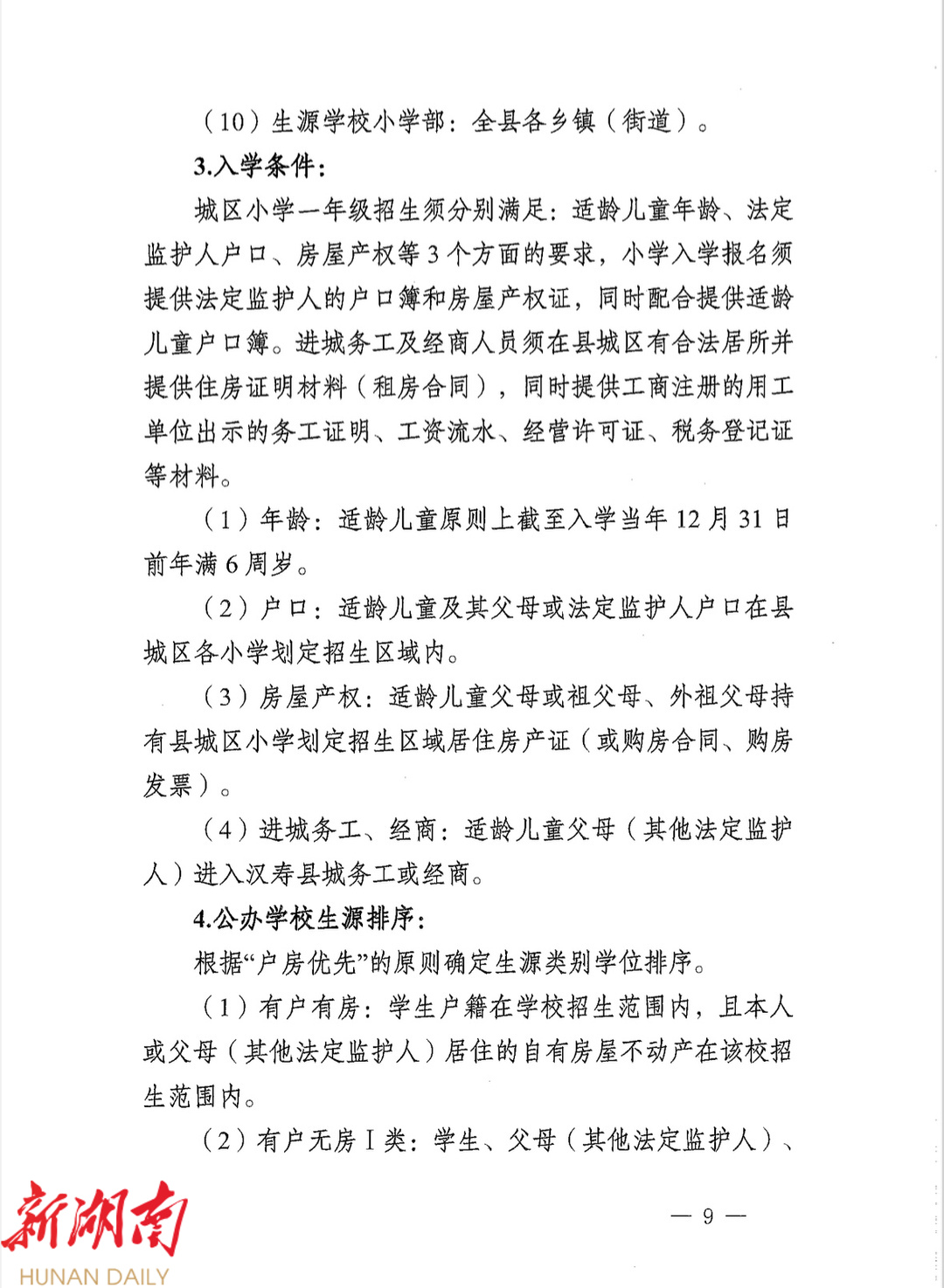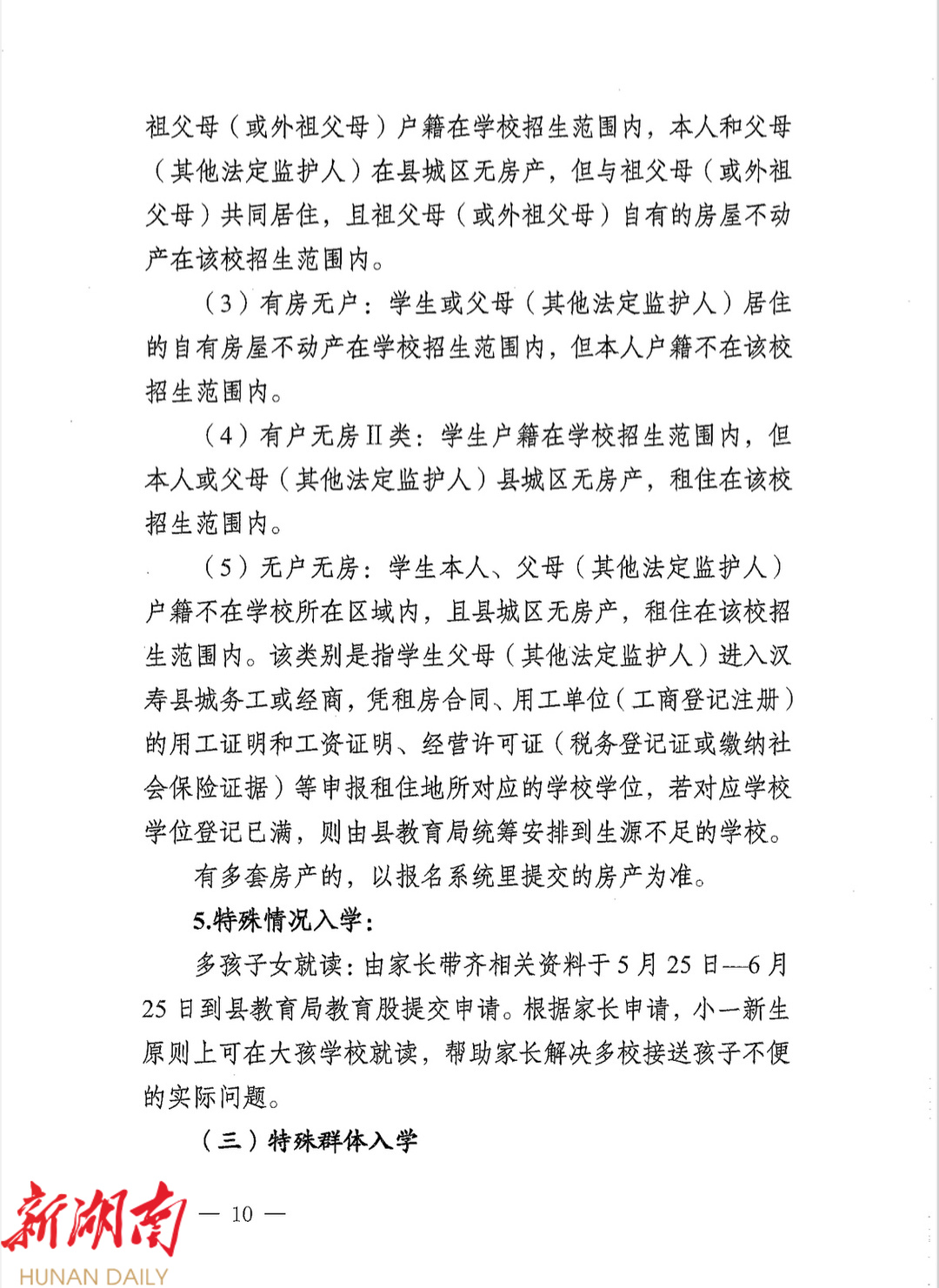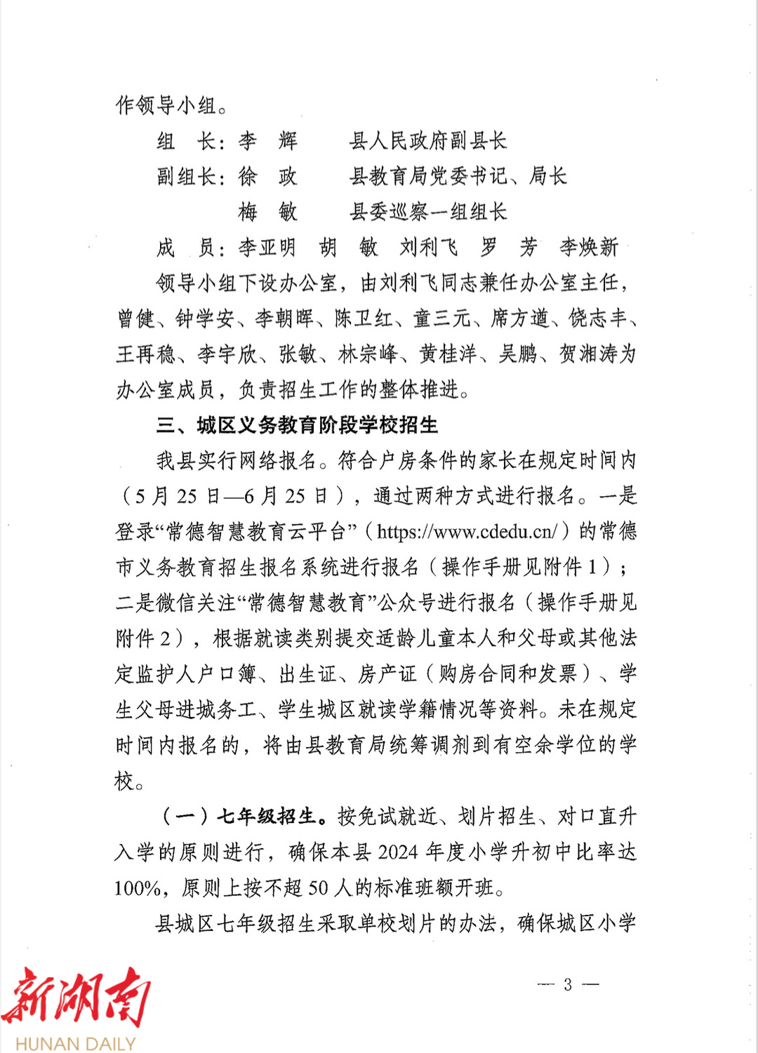 汉寿县教育局关于印发《2024年汉寿县城区义务教育学校阳光招生工作方案》的通知