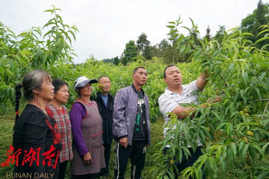 村民李新贞以前在家里种水稻、玉米,收入微薄,现在他种了6亩黄桃,每亩纯收入近5000元。除了管理自家的桃树,他还受雇在桃子夫妇的果园里打零工,2023年共计收入近5万元,日子越来越有盼头。