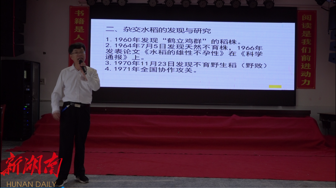 在一个多小时的授课中,来自永州职业技术学院的莫志军教授从杂交水稻如何被发现、如何进行优良基因杂交改良等研究、杂交水稻的品种等及对世界的贡献和影响,由浅至深地讲述了杂交水稻的重要性。