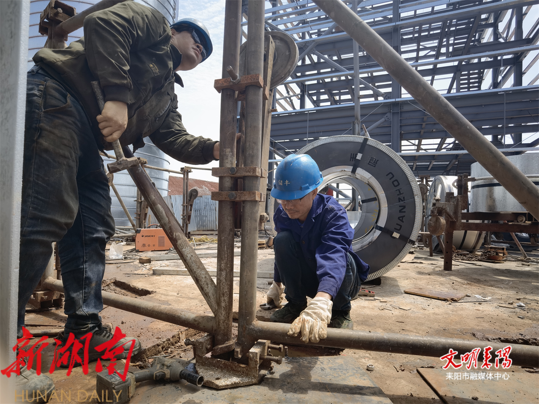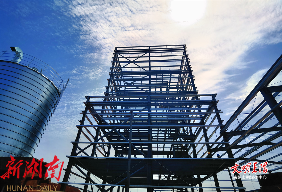 “现在,我们抢抓施工黄金期,正朝着各项施工节点目标奋力迈进,力争项目每天都有新进展,持续刷新建设‘进度条’。”席家琪指着眼前的“大铁塔”说,这就是二期项目中年产40000吨的饲料车间相关配套设施,是衡阳市重点项目之一,该车间项目建设总投资1.5个亿,主要用于建设饲料车间和购置生产设备等。目前,饲料车间主车间及卸料棚基础已基本完成,化验室也进入封顶阶段,料罐基础正在加紧施工。“饲料车间相关配套设施预计在9月份完工。建成后,整条饲料生产线基本可实现全自动生产,补齐当地蛋鸡产业链条,助力推动耒阳绿色生态养殖高质量发展。”