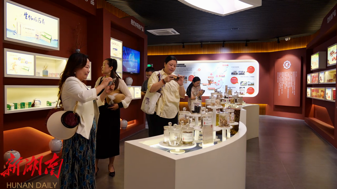 在九芝堂健康大楼,调研组参观了陈列的800余种中药标本、百余种珍稀贵重药材以及大量中医药文献资料,深入了解国家重点中药企业九芝堂的发展历程。在湖南省医药行业首批智能制造示范车间的浓缩丸生产车间,调研组学习了互联网、云计算、大数据等现代科技如何应用于中药生产,有效解决中药品生产“多、小、散、乱”的问题,实现智慧制药。此外,在中医药实践基地稻花香里农耕文化园,调研组还观摩了中医药与农耕文化相结合的实践教学新模式。