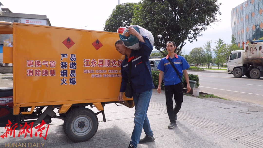 江永顺达燃气有限公司配送员工蒲跃辉称:“我们的服务宗旨就是全心全意服务好每一户燃气用户,保证燃气送上门安全又高效。”