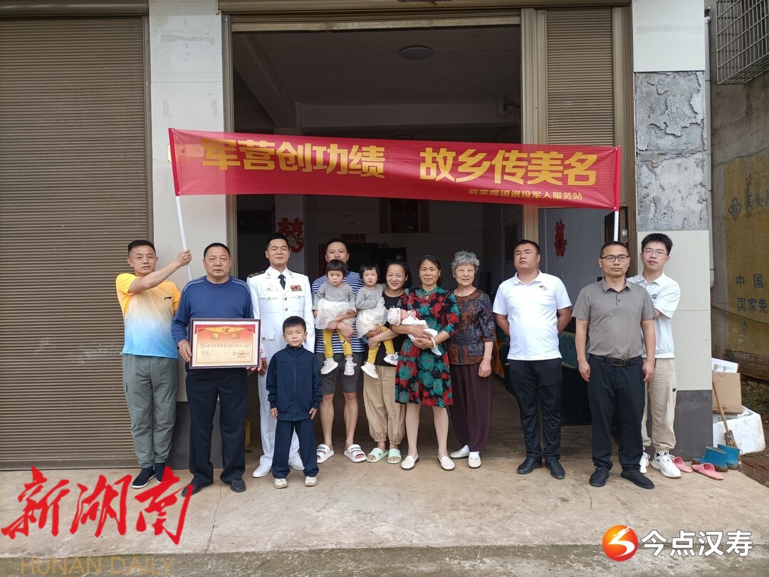 5月20日,蒋家嘴镇退役军人服务站联合镇武装部开展为立功的现役军人家庭“送喜报上门”活动,送上来自家乡的祝福,并致以崇高的敬意。