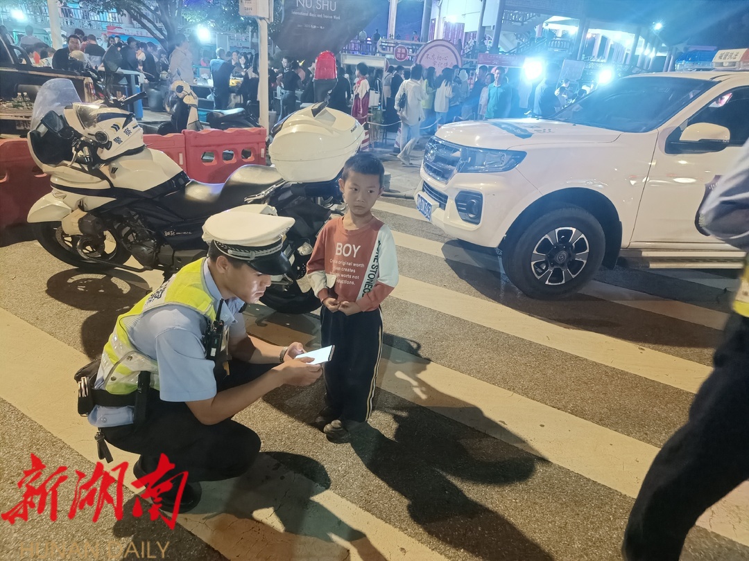 在活动现场,执勤交警注意到一个小男孩眼中满是惊恐和无助,站在原地不知所措。经沟通得知,男孩因为深陷现场热闹气氛而“疯跑”,导致与家人走散。