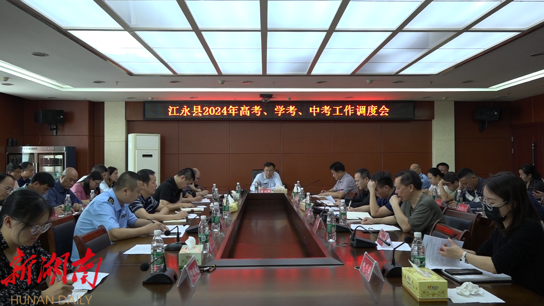 新江永客户端讯(记者 周佳琳 通讯员 王玉凤 李懿 ) 5月21日,江永县召开2024年高考、学考、中考工作调度会,副县长蒋剑平,县政府办三级调研员袁江荣,县招委会成员单位分管负责人,考点主考、工作组长、相关学校校长参加。