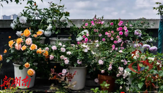 “养花让我身心愉悦,在养花的过程中结识了很多兴趣爱好相同的花友。每天跟花朵打交道,看到它们顽强的生命力,自己也对生活充满了热爱。”每天,她都在和花打交道,扦插、育苗、浇水、施肥、修剪等,日复一日。看到孩子在鲜花的陪伴中一天天快乐成长着,她更是乐在其中,欣慰无比。湘雁姐是花友中有名的“月季能手”,她建议想养月季的小伙伴可以“先从‘ 果汁阳台 ’养起,因为它抗病性强,开花性好,容易打理。”