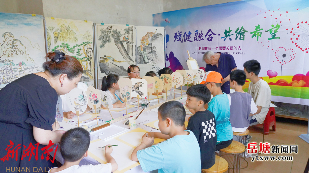 岳塘新闻网5月25日讯 (记者 郭奕含 通讯员 蒋新)5月25日,岳塘区 霞城街道下摄司村 举行“ 关爱残疾人·共促残健融合 ”绘画主题活动。 活动邀请热爱书法绘画的肢体二级 残疾人刘辉强为15名困境儿童、留守儿童授课绘画, 旨在增强对残疾人的关爱、理解和支持,促进社会对困境儿童的关注,并加强他们与社会各界人士的交流与互动,进而推动残疾人、困境儿童、留守儿童与社会更加和谐地融合与发展。