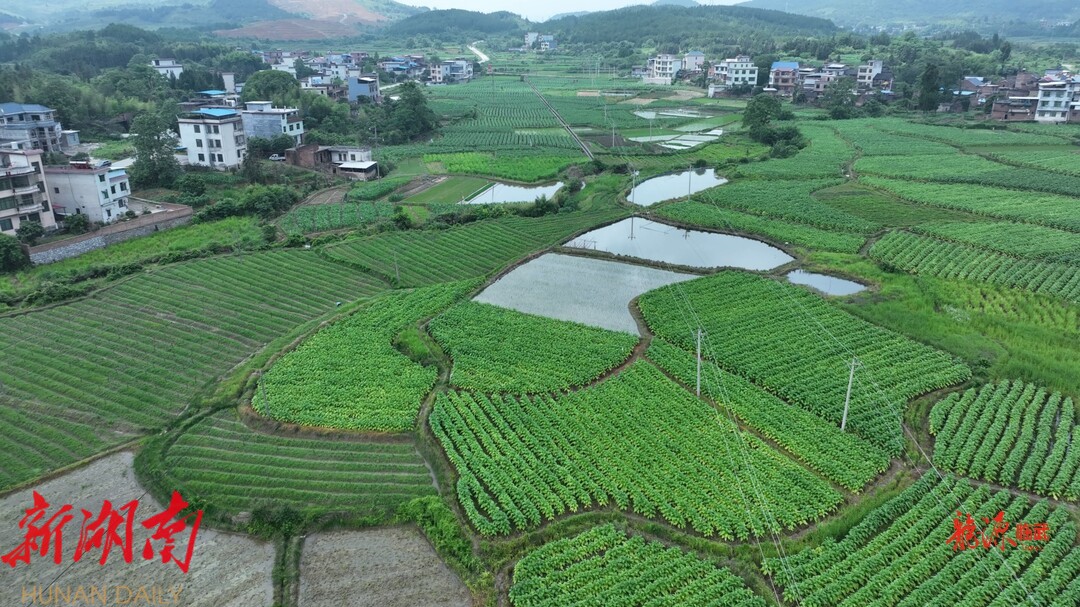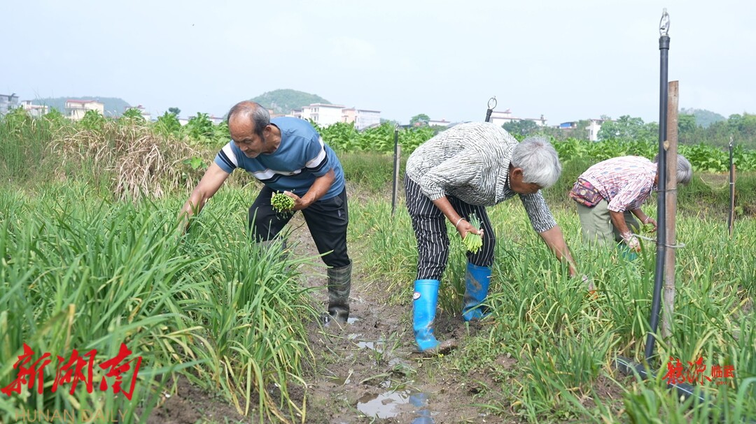 在花塘乡花塘村,一垄垄韭菜花翠绿欲滴,长势茂盛,村民们在田间有条不紊地进行采摘、捆扎,一派忙碌的丰收景象。