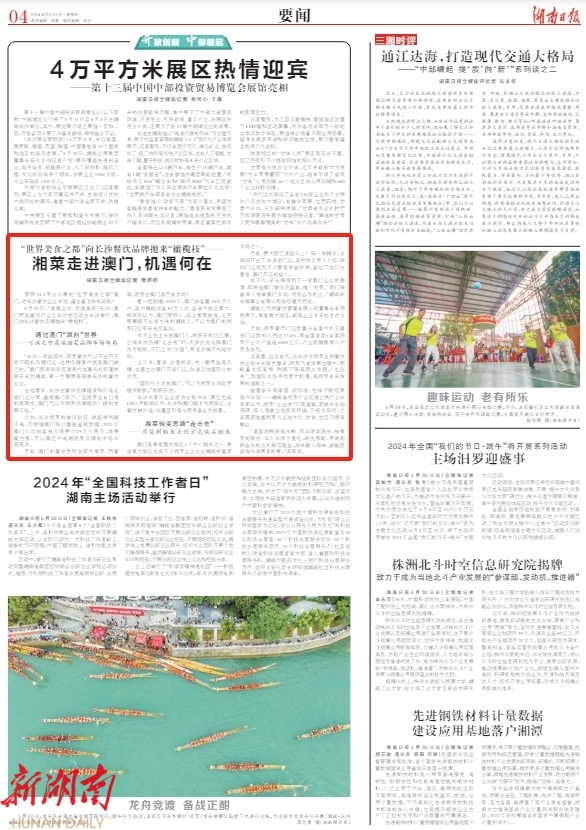 前不久,新长福得到了一家澳门企业的邀请,即将赴澳门举办品鉴宴,推广湘菜。“我们准备深入考察澳门市场,寻求合作机会。”湖南新长福事业有限公司总经理何君说。