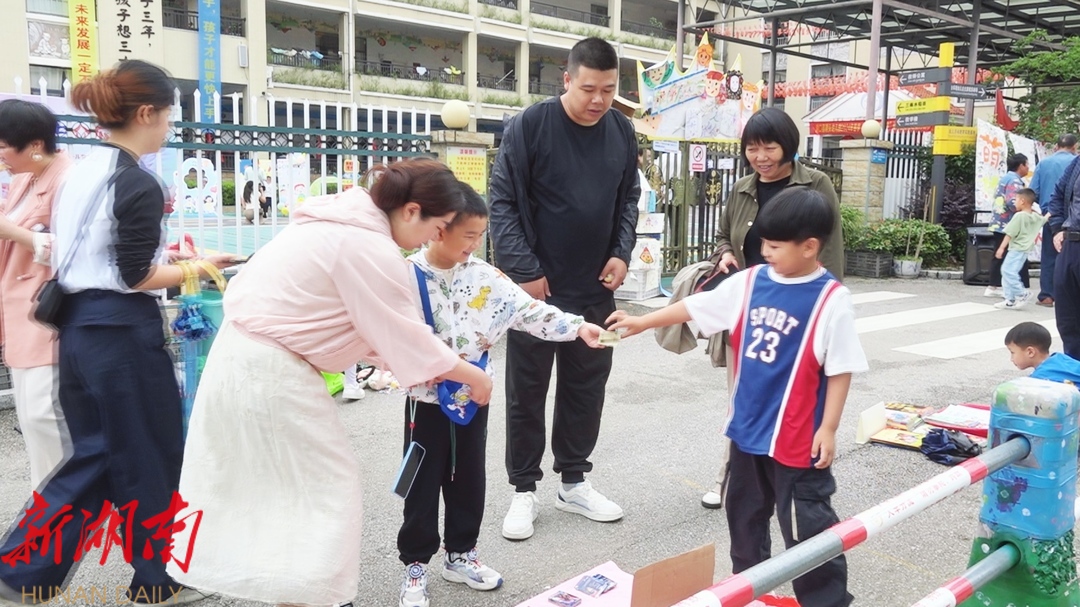 在“跳蚤市场”,买卖活动遵循“货物真实,开心购物”原则,由孩子自行决定,最大程度发挥幼儿的主动性。 孩子们 扮演起“老板”角色,热情地向往来小顾客推销自己的商品;也有孩子带着家长准备的零钱,在各摊位间认真地挑选自己心仪的商品,体验着公平买卖的过程。