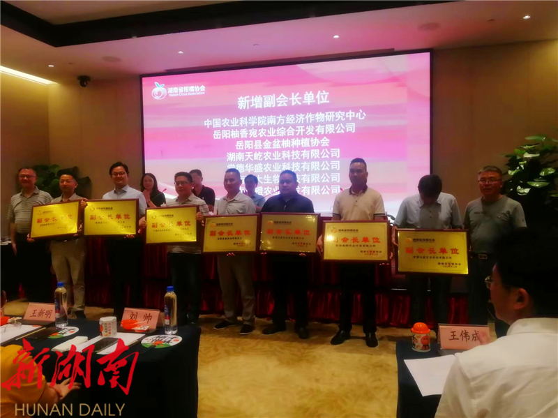 会上,省柑橘协会2023年新增会员单位25家,其中副会长单位8家,理事单位10家,会员单位7家。岳阳县的2家单位成功入选副会长单位,分别是岳阳县金盆柚种植协会、岳阳柚香苑农业综合开发有限公司,为省柑橘协会发展壮大增添了新鲜血液,助推全省柑橘产业更快更好发展。