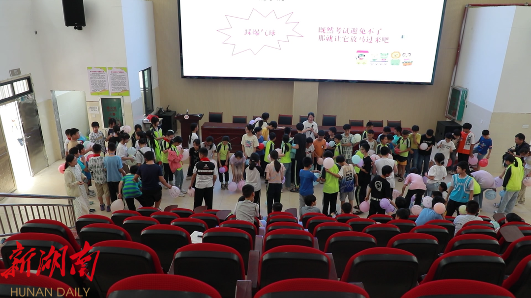 江永县潇浦镇芙蓉学校六年级七班学生欧阳慧颖说:“经过这个放气球和写出自己内心的这个压力,我感到了很大的开心,我的压力也减轻了很多。”