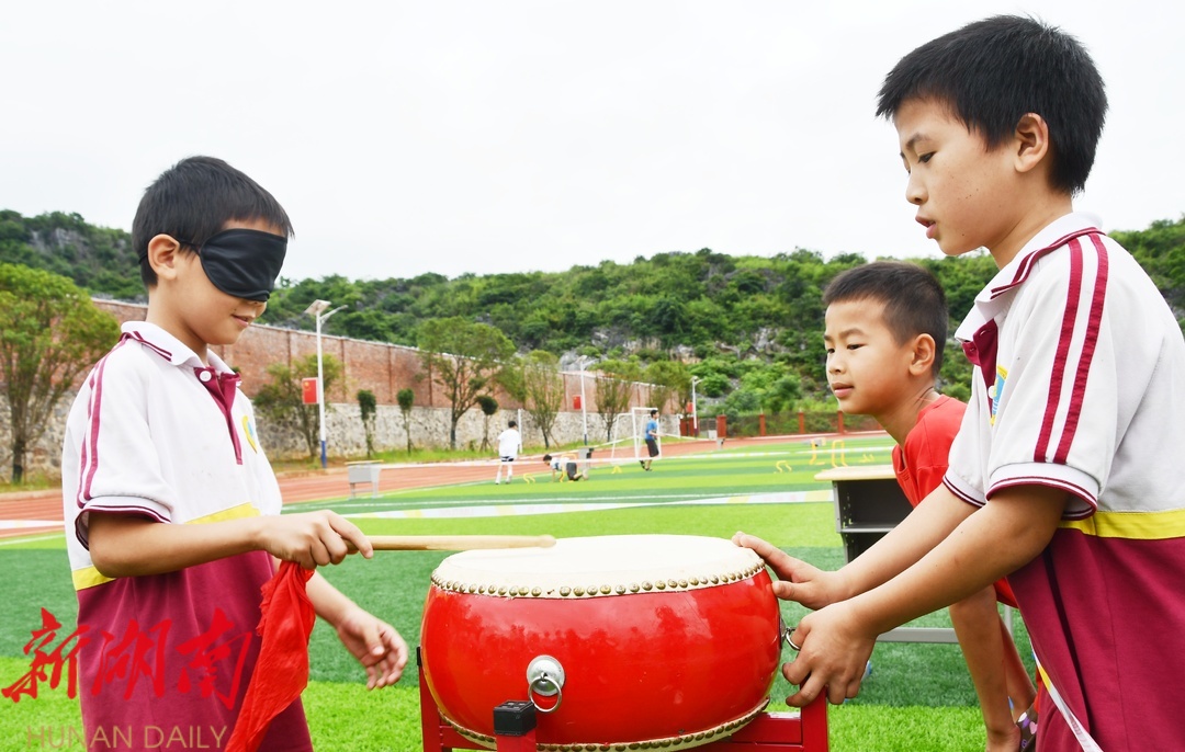 江永县金海明礼学校开展形式多样的趣味活动,400余名学生齐聚在运动场上。雄狮顶珠,蒙眼敲鼓、掌上明珠、投壶纳财、魔力套圈、乒乓球水上漂等十多项趣味活动项目,吸引了学生们参与,他们有的套圈、有的投壶,有的吹乒乓球,其乐融融。