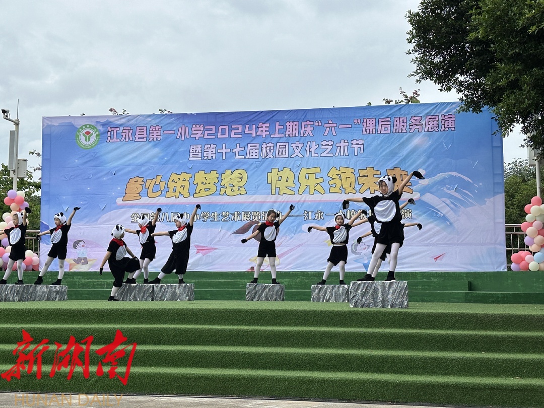 江永县第一小学开展了以“童心筑梦想 快乐领未来”为主题的第十七届校园文化艺术节。舞蹈、走秀、情景剧、合唱、诵读等一个个个精彩的节目轮番上演。教师开场舞《自由自在》然爆全场,师生诵读《诗韵童心》、情景剧《不能没有你》、朗诵表演《弘扬长征精神,做新时代的好少年》编排新颖,节目宣传传统文化,寓理于剧,讴歌情怀,极富教育意义。