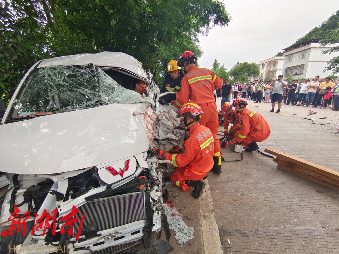 江永:疲劳驾驶酿事故 消防员紧急施救