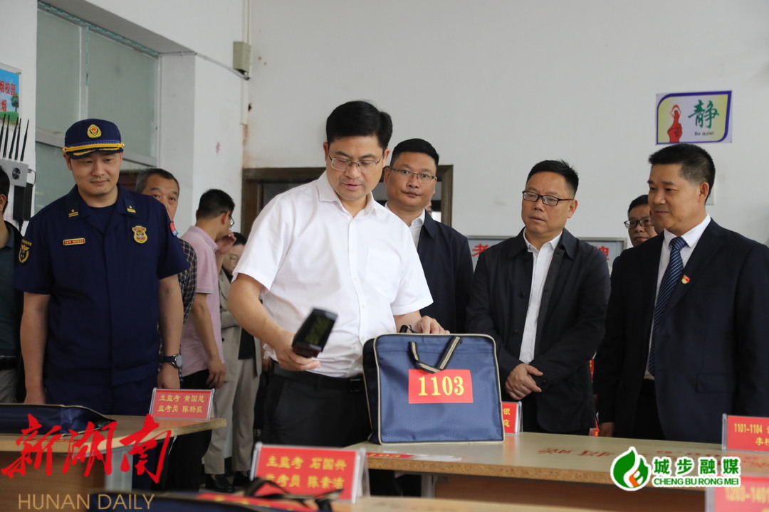 余勋伟一行先后来到城步一中食堂、语音播报室、考试视频监控中心、试卷保密室等地,详细了解食品卫生、考场布置、应急处置等工作开展情况,叮嘱考务工作人员要坚守岗位,尽职尽责,全力以赴实现“平安高考”的目标。