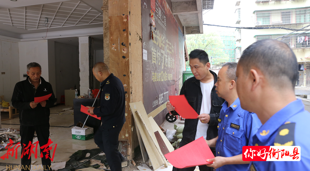 连日来,县城管执法局执法人员对考点周边一公里范围内的小区物业、居民、商户、建筑工地发放《关于在高考、学考、中考期间建筑工地临时停工的通知》,倡导大家积极参与“静音”护考行动。在衡阳县第三中学旁,一个临街商铺正在装修,执法人员动之以情,晓之以理,引导商家自觉遵守相关规定。经过执法人员的耐心劝导,商家表示,将暂停装修工作,为考生创造安静的学习和休息环境。