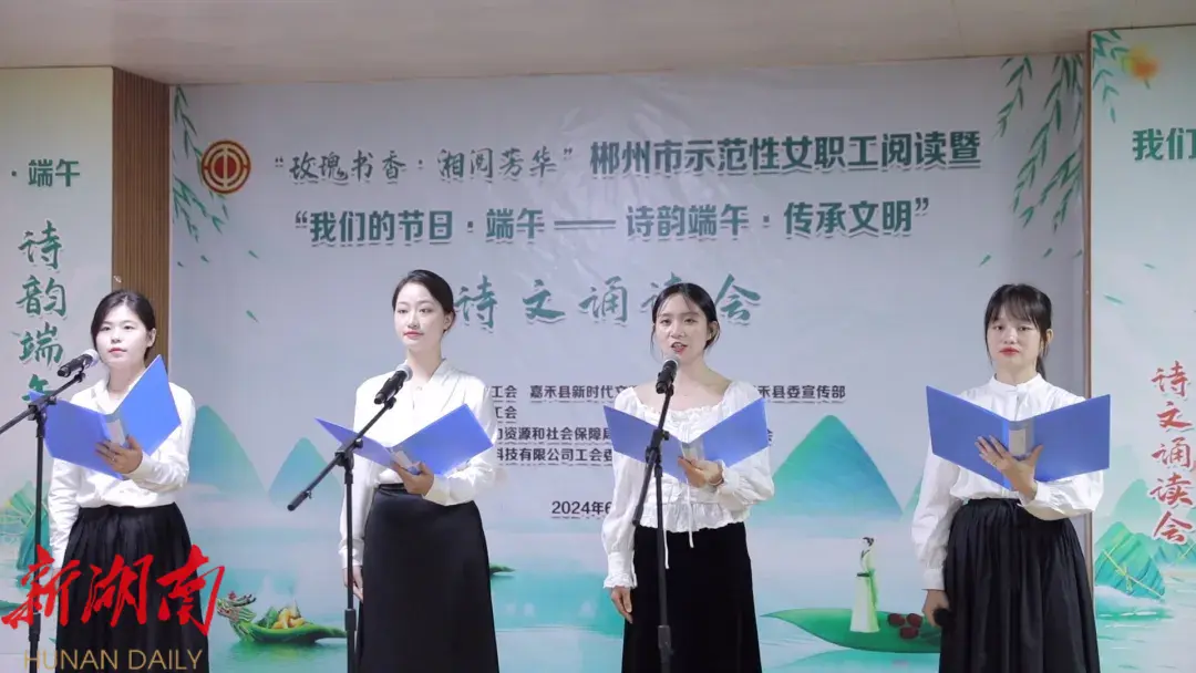 以诗会友、借诗传情、以文化人,共品端午文化、共享视听盛宴。6月4日,县总工会联合县委宣传部、县新时代文明实践中心等部门在湖南鑫泉科技有限公司举办“玫瑰书香·湘阅芳华”郴州市示范性女职工阅读暨“我们的节日·端午——诗韵端午·传承文明”诗文诵读会。