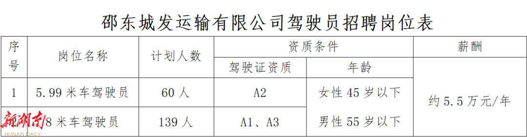 根据工作需求和计划安排面向社会公开招聘驾驶员199名(劳务派遣),考核合格者委派至邵东城发运输有限公司的城乡客运驾驶员岗位,现将有关事项公告如下: