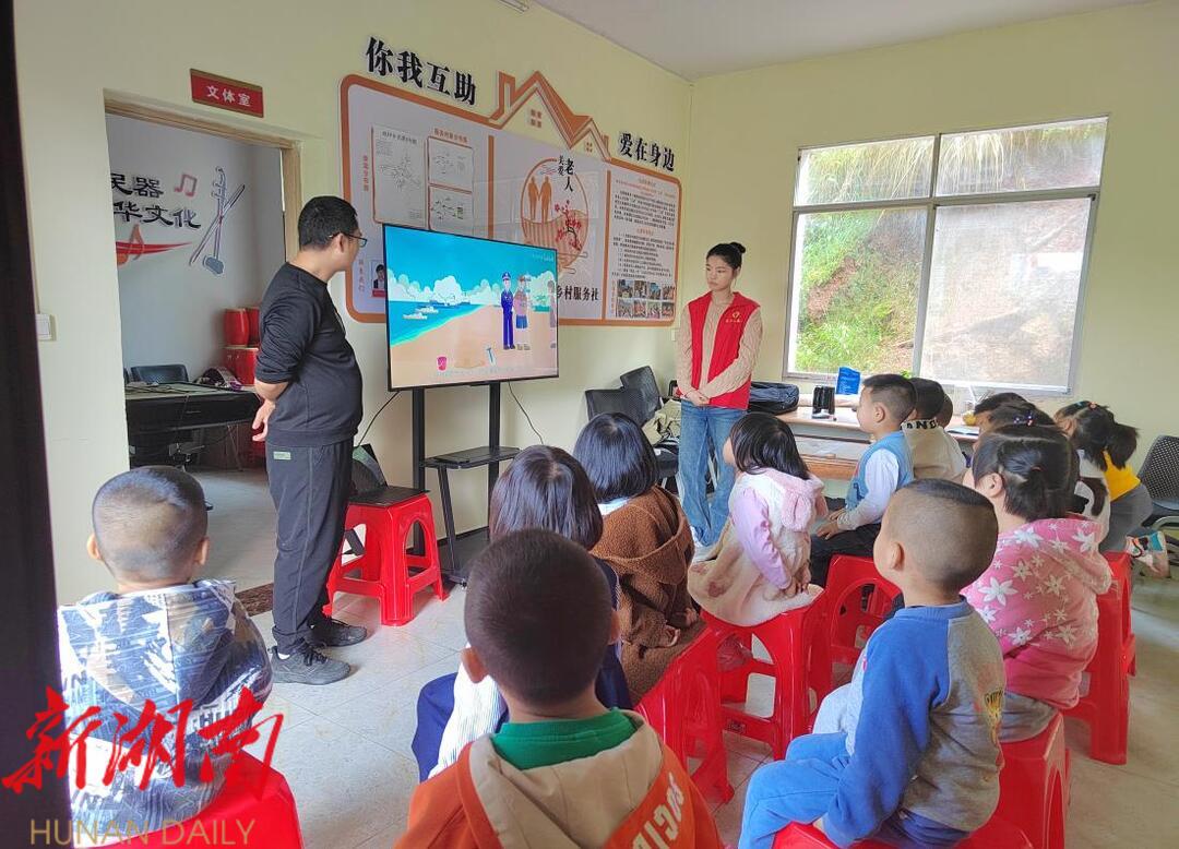 以“关爱课”温暖童心。 “一根手指点点,两根手指剪剪”,伴随着童声阵阵,李思怡正在教小朋友们做手指操,吸引孩子们的注意力和积极性。晓坪乡积极探索助教方式,以寓教于乐的形式带领学生们学习法治知识,再针对小朋友们的年龄特征、性格特点,精心设计“你说对不对”等小游戏,引导孩子们积极互动,切实关爱孩子们的身心健康。