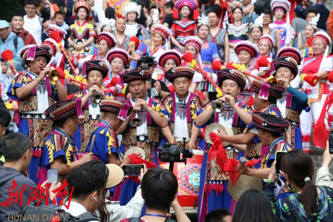 除了“梭地龙”,现场还有经典的土家打溜子表演,锣鼓声声、铜钹齐鸣,独特的节奏和震撼的音乐,让游客赞不绝口,纷纷拿起手机“咔嚓”不停。