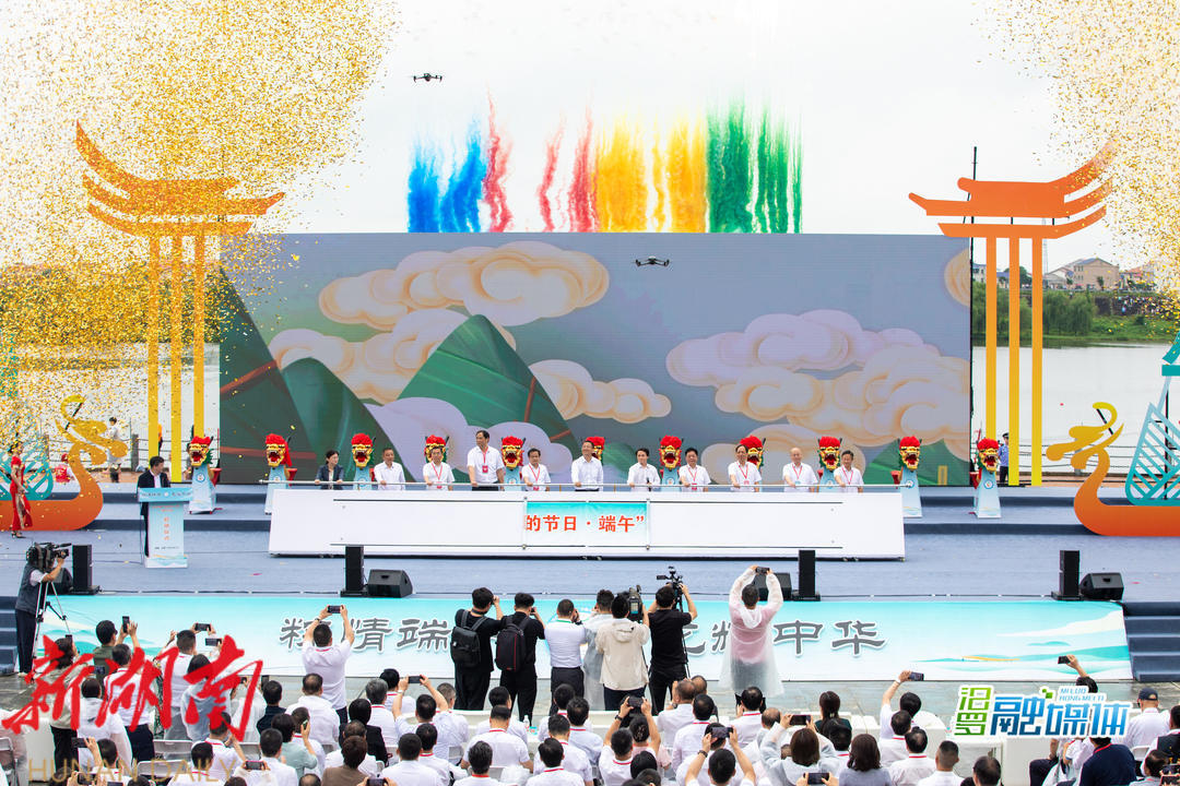 湖南日报·新湖南客户端6月10日讯(通讯员 夏凡 周敏 杨志 胡清)端午源头过端午,龙舟故里赛龙舟。6月10日上午,端午节,湖南省汨罗市汨罗江国际龙舟竞渡中心人潮涌动、龙舟列阵,2024年全国“我们的节日·端午”主题文化活动启动仪式在此举行,万千市民游客齐聚汨罗江畔,看传统龙舟比赛,尝原味碱水粽子,共享端午文化盛宴。