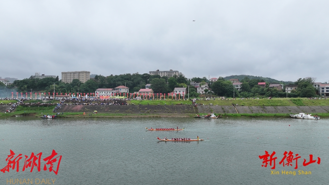 (来自湘江河两岸衡山和衡东两地的六支队伍百余名龙舟队员展开激烈角逐 )