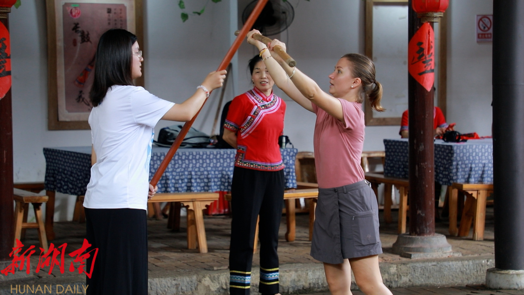 南京市第十三中学方若曦说:“我觉得就是这里的民俗啊,文化传承的非常非常的好,教我们跳那个长鼓舞,还有武棍的那些姐姐们和阿姨也非常的热情。”