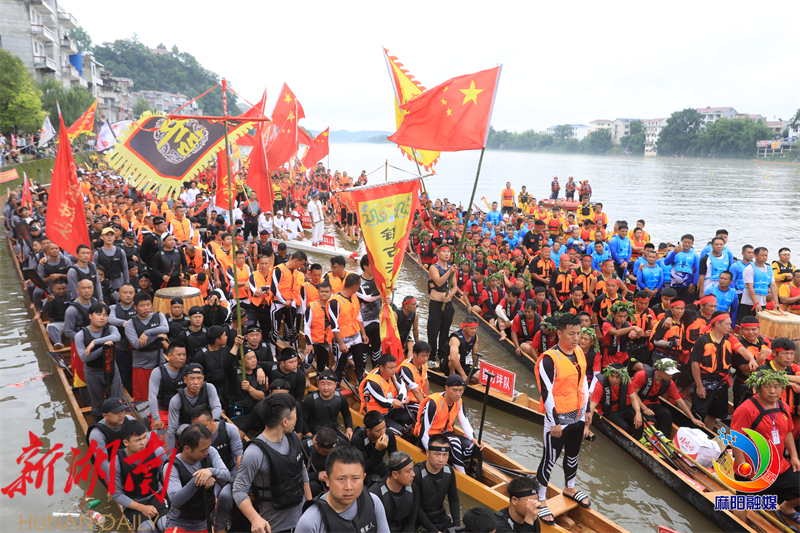 上午9点,22支来自麻阳、泸溪 的龙船队齐聚锦江河边,长河号子非遗传承人——胡绵水在开幕式上领唱龙船号子,这号子高亢有力,气势十足,声势振天,充分展示了麻阳苗乡爱划龙船、勇闯逆流险滩的豪迈气派。