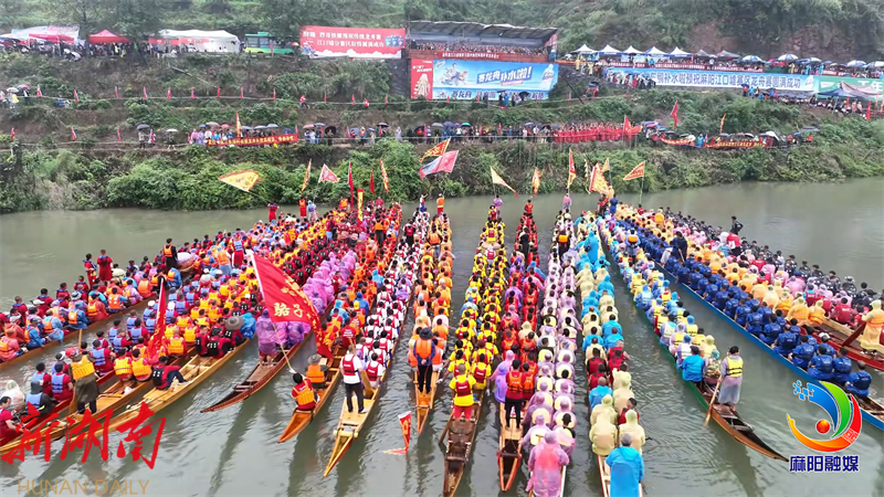 翻过最后的拦水坝,再次入水后,龙舟队终于抵达“赛场”,迎接他们的是早早就等候在此的村民。在这里,神九龙舟队与来自其他村镇的龙舟队伍上演了一场水上的“速度与激情”。