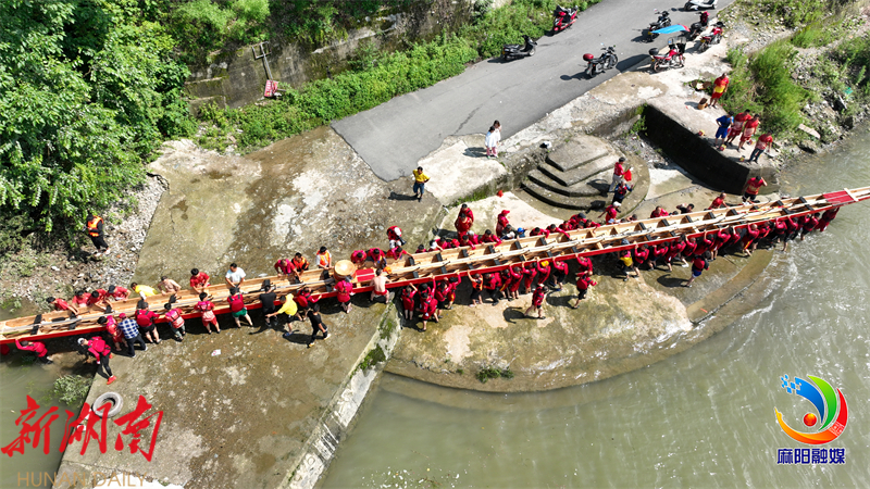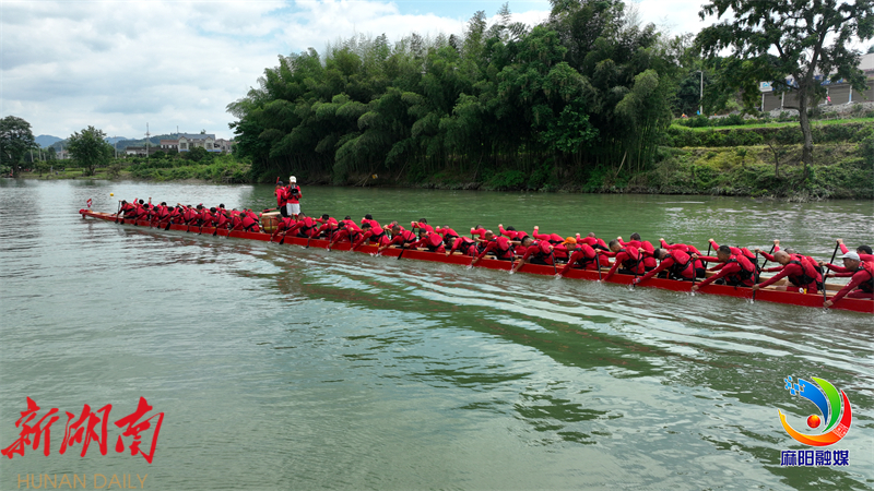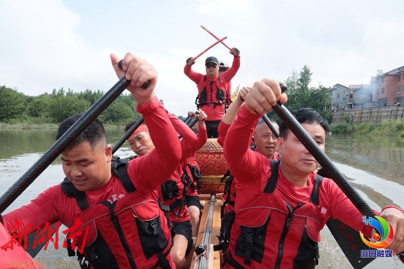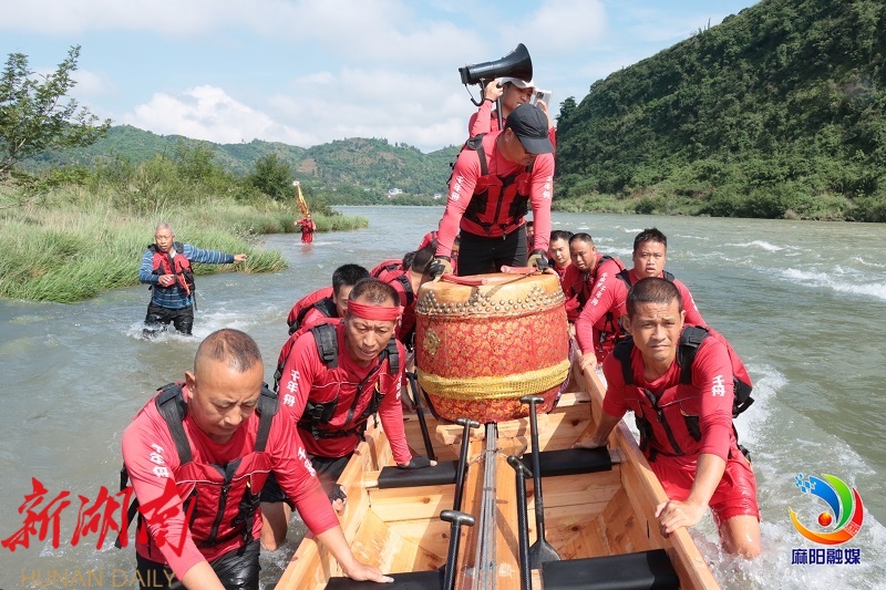 隆家堡村“神九龙舟队”在麻阳这片水域颇有名气,成员均为村里的普通村民。一到龙舟下水时节,村民们无论身处何方,都会赶回村里,年纪最大的达55岁,最小的18岁,队伍中还常常会出现“父子兵”或兄弟同上阵的情况。“我是队里年纪最大的,与这些年轻人一起训练,不怕苦、不怕累。我有两个儿子,我带他们一起训练。”队里的舵手陈顺告诉记者。