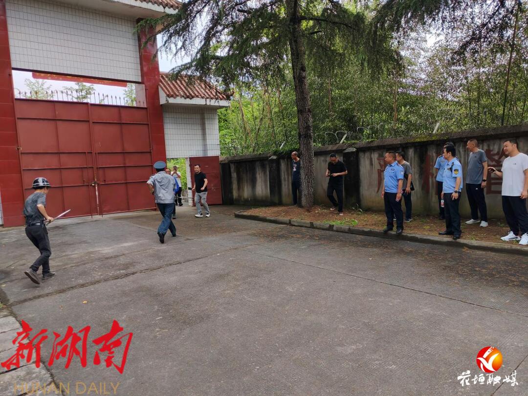 犯罪分子入侵仓库,控制犯罪分子反恐应急演练模拟场景中,某日晚八点半,仓库人员进行巡查,在雷管库边发现不明人员,随即与不明人员保持三米以上距离,上前询问,瞬间不明人员从身后掏出凶器攻击仓库巡查人员,仓库巡查人员利用随身携带的盾牌、警棍、防暴叉等防暴工具将暴徒制服。