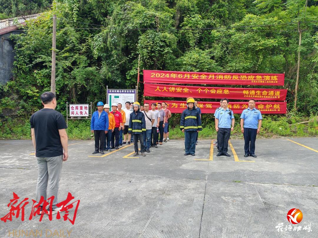 6月14日上午,花垣县交通运输局组织吉安危险品运输有限公司在花垣县民爆公司中心库举行2024年消防、反恐、应急救援综合演练。县交通运输综合行政执法大队、县公安局治安大队、县道路运输服务中心、县民用爆破器材有限公司、县吉安危险品运输有限公司、花垣永安爆破工程有限公司、花垣永安爆破工程有限公司中心库共50余人参演观摩。