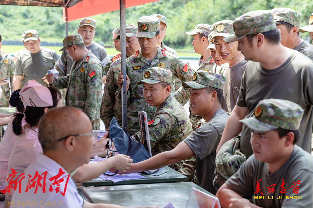 “平时服务、急时应急、战时应战”6月14日,正在湘西州民兵训练基地集训的民兵在过集体生日时,立下奋斗誓言。湘西州将新时代奋斗观融入民兵训练中,同步开展“讲奋斗故事、学身边典型”奋斗观大讨论;“关心国防,关爱民兵”义务送诊“进训练场”“ 进圩场”;着力提升民兵应急能力的同时,让更多人熟悉民兵群体,让民兵感受社会尊崇。