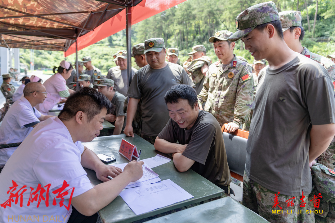 炎天暑热,为期12天的民兵集训十分艰苦,民兵们虽然腰酸背疼,却没有一人请假早退。湘西州中医院的专家为民兵、退役军人免费义诊,送去了推拿、拔罐、热敷等理疗服务,一场理疗下来,民兵们疼得龇牙咧嘴的同时,也感觉浑身轻松,再次满血复活,中医院的专家还为民兵们量身打造了一堂救援知识现场教学课,专家讲得仔细,民兵们学得认真,民兵沈刚说:“准备考一个证,遂行任务和抢险救援的时候用得上。作为国防后备力量,我们要时刻保持警惕,要坚定信念、遵守纪律、团结协作、坚守岗位,要不断提高自身素质为国家安全稳定贡献民兵力量。”
