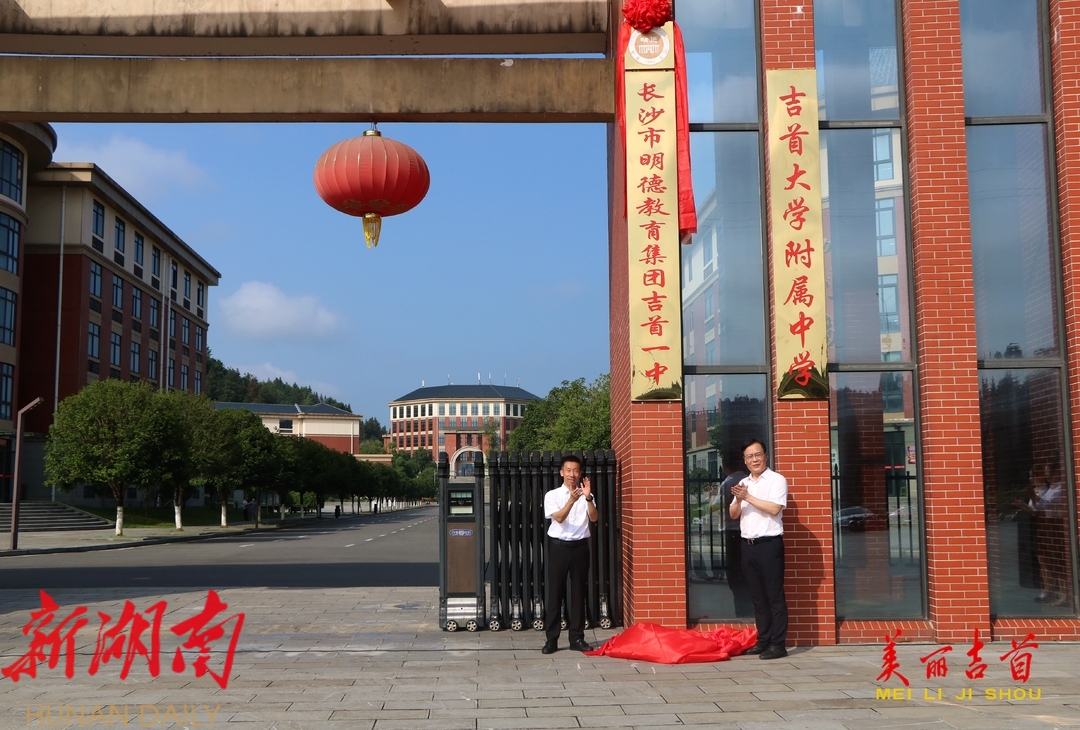 6月15日,长沙市明德教育集团吉首一中揭牌仪式在吉首市第一中学举行。湘西州委常委、吉首市委书记周立志、长沙市明德中学党委副书记、校长王胜楚、市领导李成晚、余琛出席仪式。
