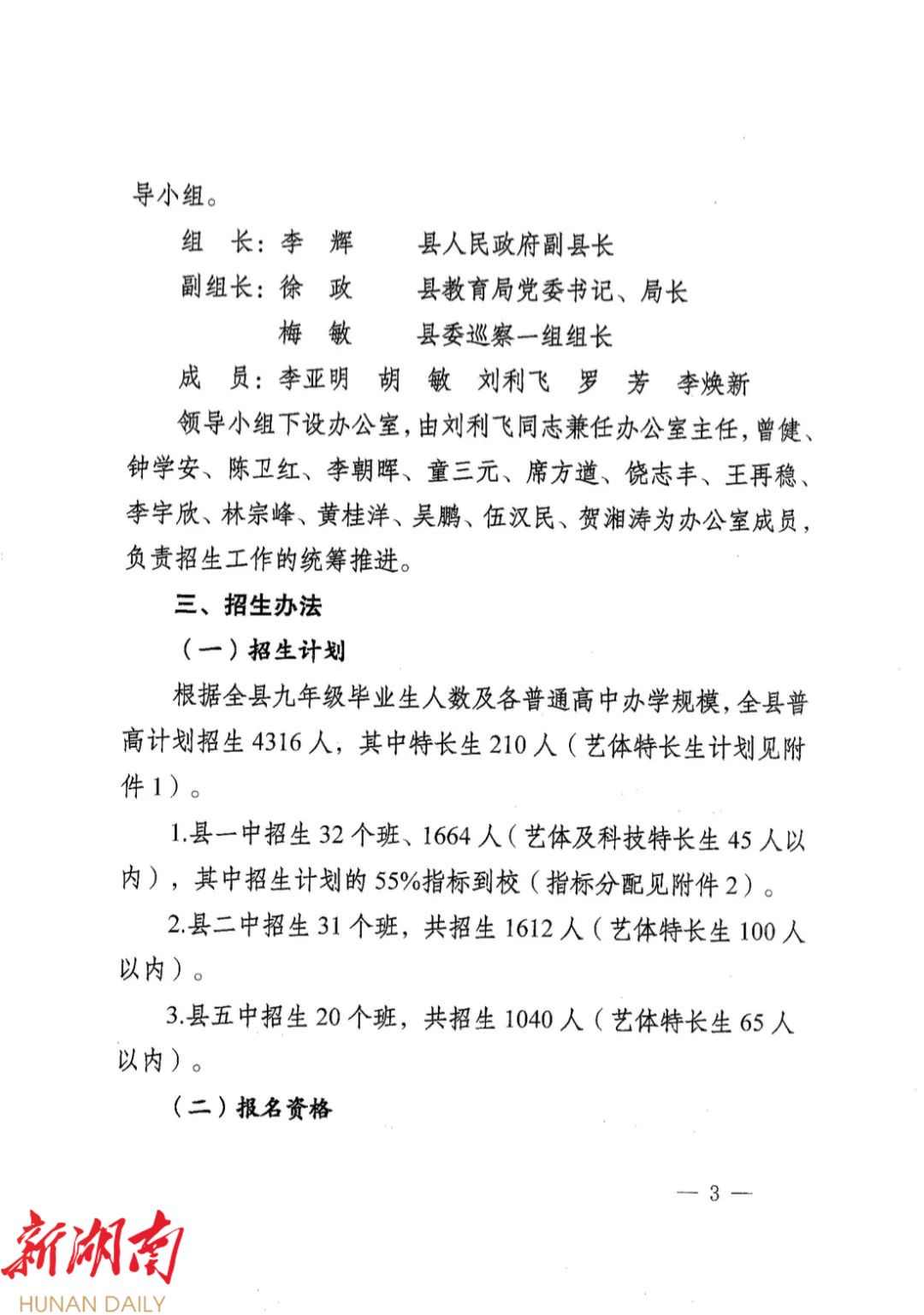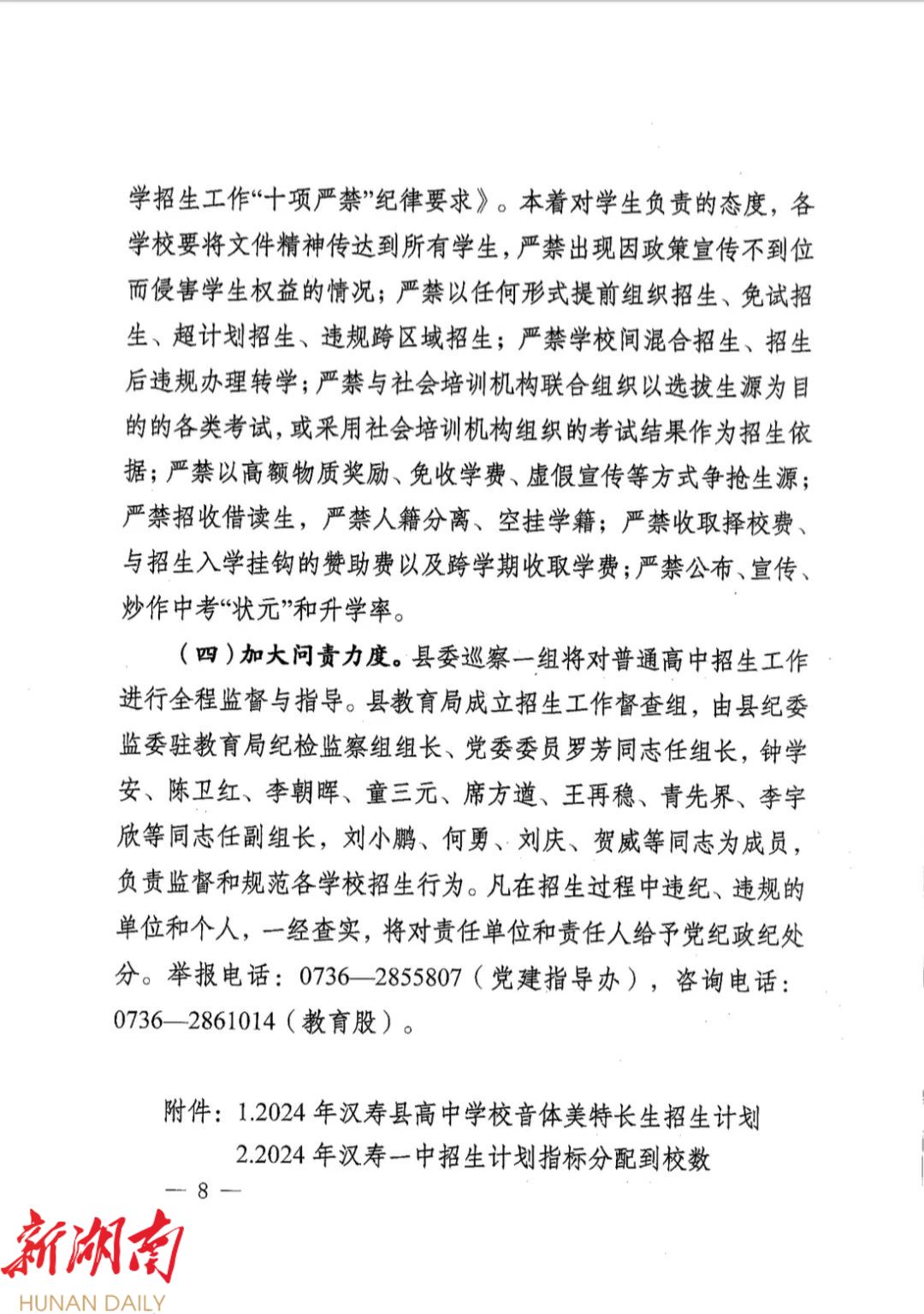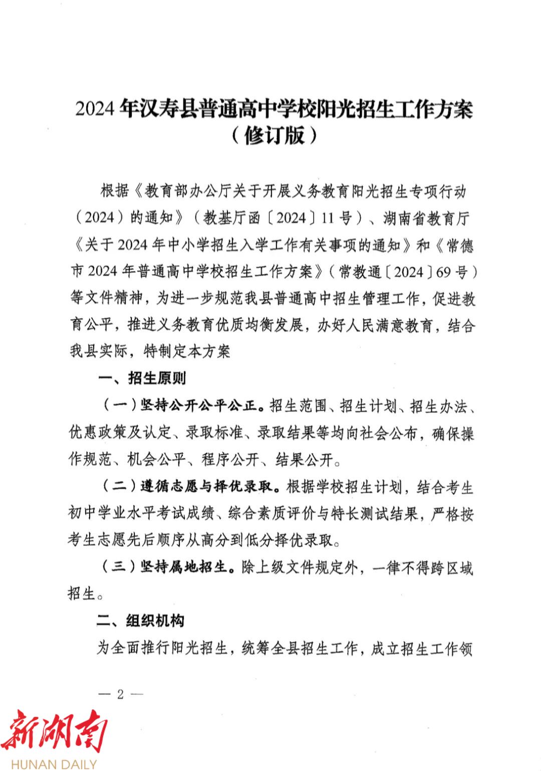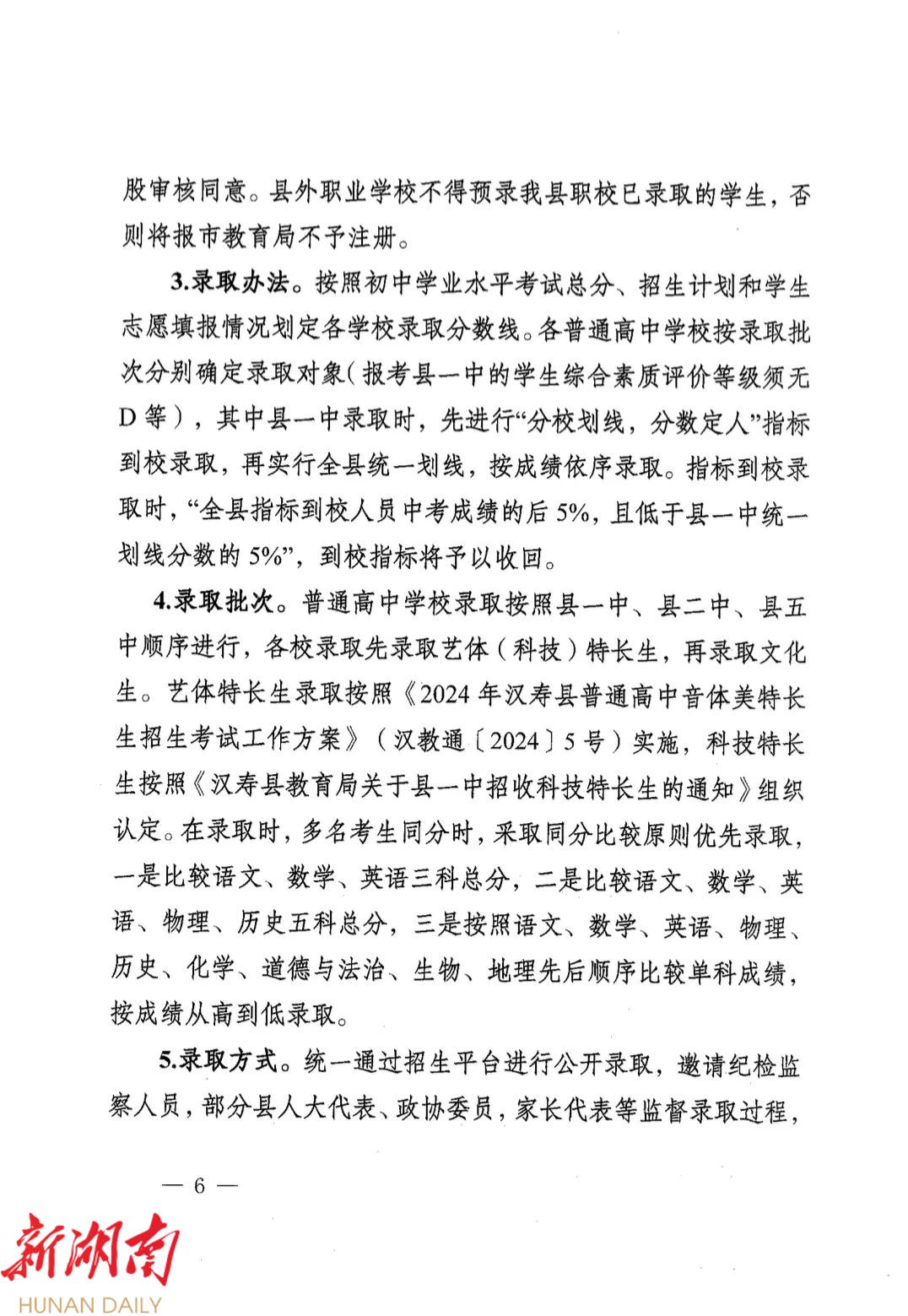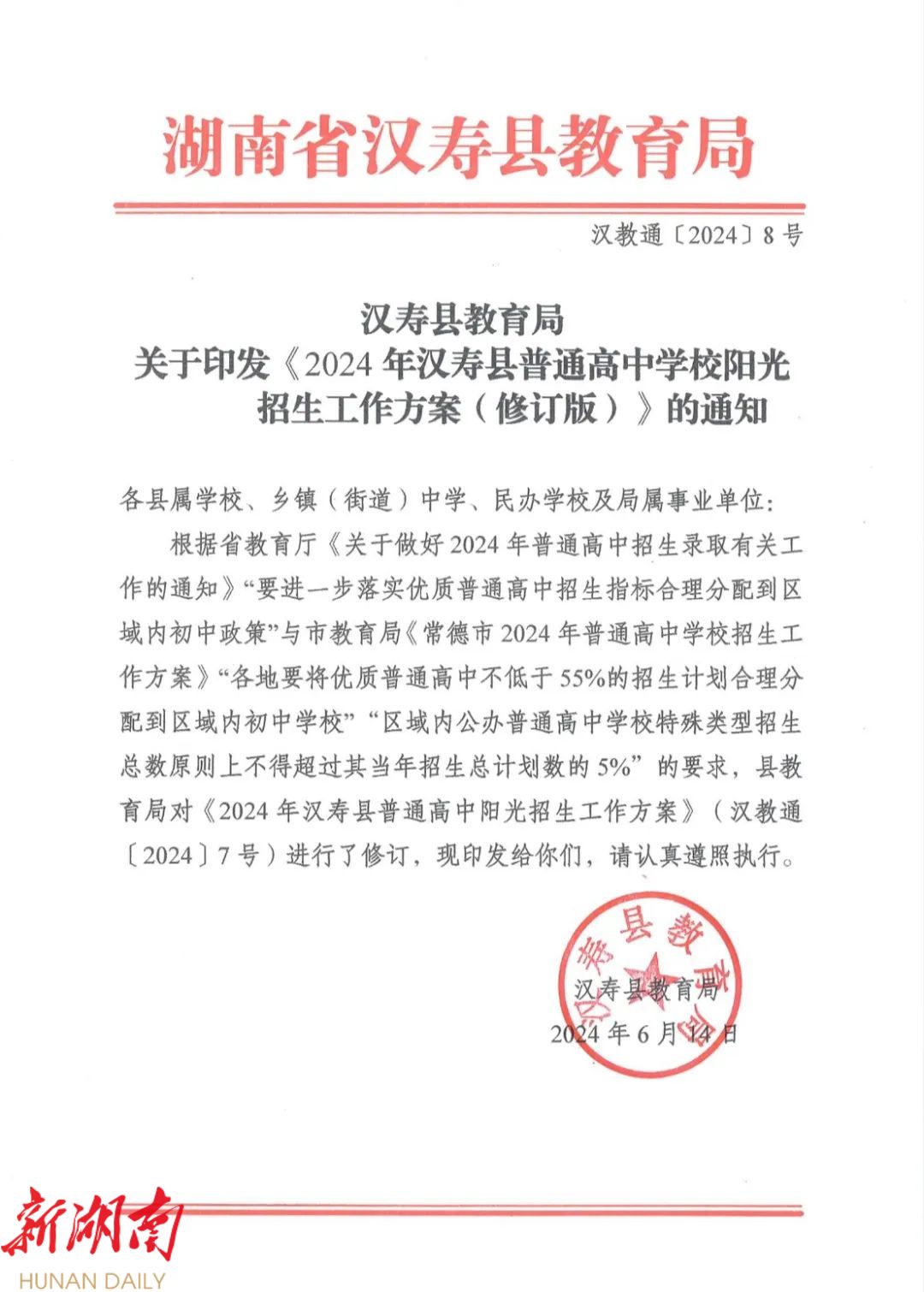 汉寿县教育局关于印发《2024年汉寿县普通高中学校阳光招生工作方案(修订版)》的通知